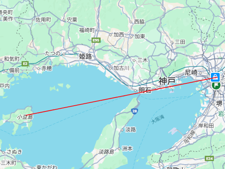視線の先、西の地平を繋ぐのは、白銀に輝く明石海峡大橋。その巨大な橋桁の向こう側、吸い込まれるような水平線の真ん中に、小豆島の山影がぴたりと重なっています。大阪の都心から、明石の門を抜け、瀬戸内の島へと至る一直線の光路。この視界の透明度は、静かな感動を運んでくれます。これほどまでに遠く、そして美しい景色を貫いて見通せたのは久しぶりです。